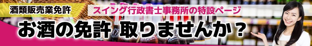 業務のご案内 2025.04.20 2022.07.06 業務のご案内 酒類販売業免許申請(全国対応) スイング行政書士事務所の「酒類販売業免許」特設ページです。 運送業・霊きゅう運送許認可申請 スイング行政書士事務所の「運送業許可」特設ページです。